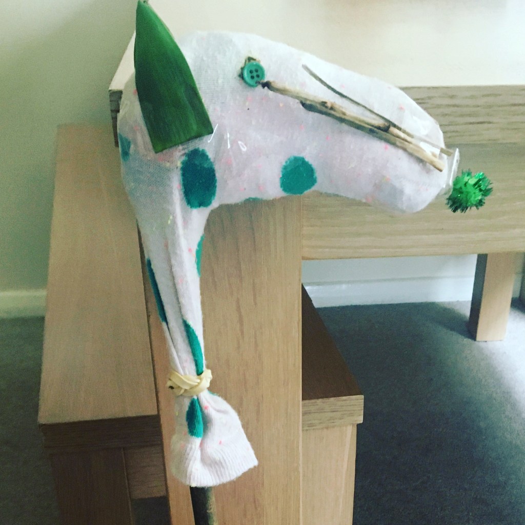 π³π²π³π³SO find a stick on your travels OR a garden cane OR if you canβt get out and about at the moment a broom or mop handle OR even a little wooden spoon for a mini magical creature β¦. find an ODD sock, bet there are LOADS in your laundry pile, stuff it with other socks or paper and ADD some feathers – I used buttons for the eyes, a Pom Pom for the nose, leaves for ears abs twigs for some whiskers β¦ IT was tricky sticking it all on the sock so I used sellotapeβ¦. π³ππ²π³π²