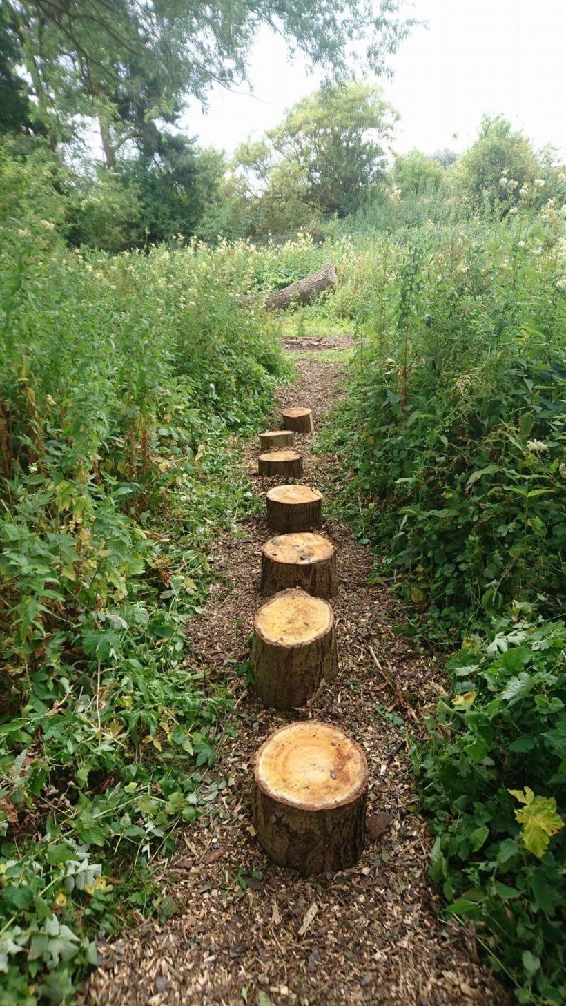 Many thanks to the volunteers today for helping lay new bark paths, cut back nettles, make a bench and create some stepping logs. Hard work on a hot day but the site is looking great!