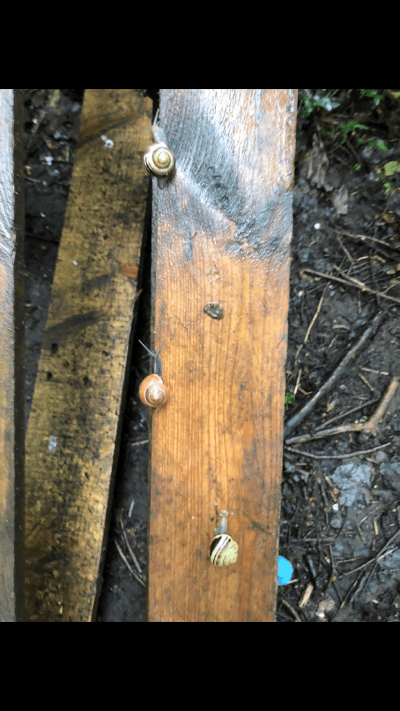 ππPhoto taken first thing setting up, uphill racing on a pallet. Think these may have been the same ones still there in the afternoon ππ. LOTS of conversations around the snail patterns, how they move and, of course, how we shouldnβt actually take them home π€¨π